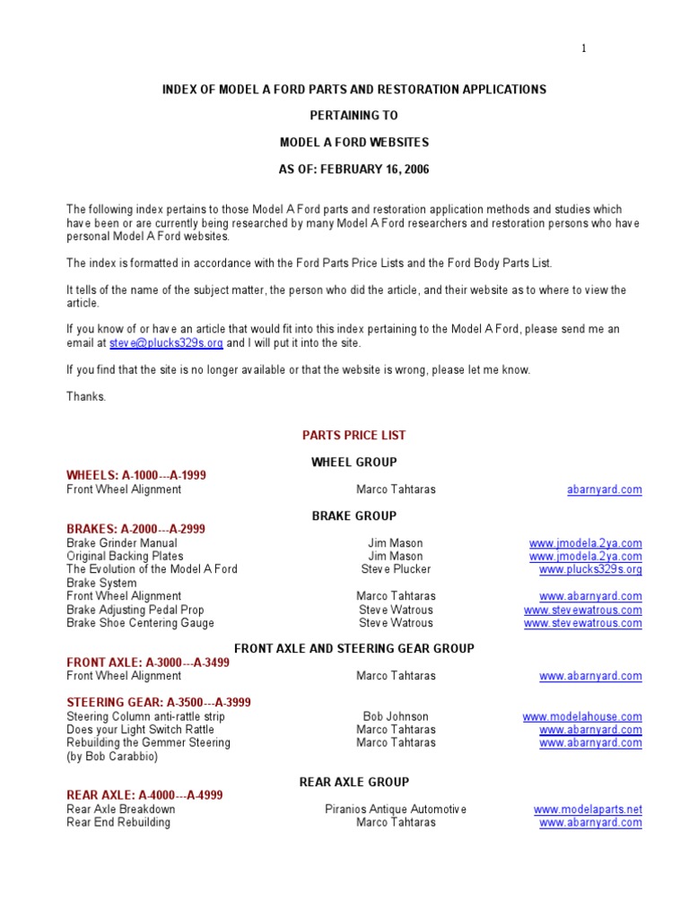 Diagrams and Schematics Index Section A - Front/Rear Axle Assemblies and Suspension Front Axle Rear Axle Driveshaft Suspension: Wheels Section B - Brake Assemblies and Components Hydraulic Brake System Master Cylinder Brake Booster Clutch/Brake Pedals Section C - Steering ...