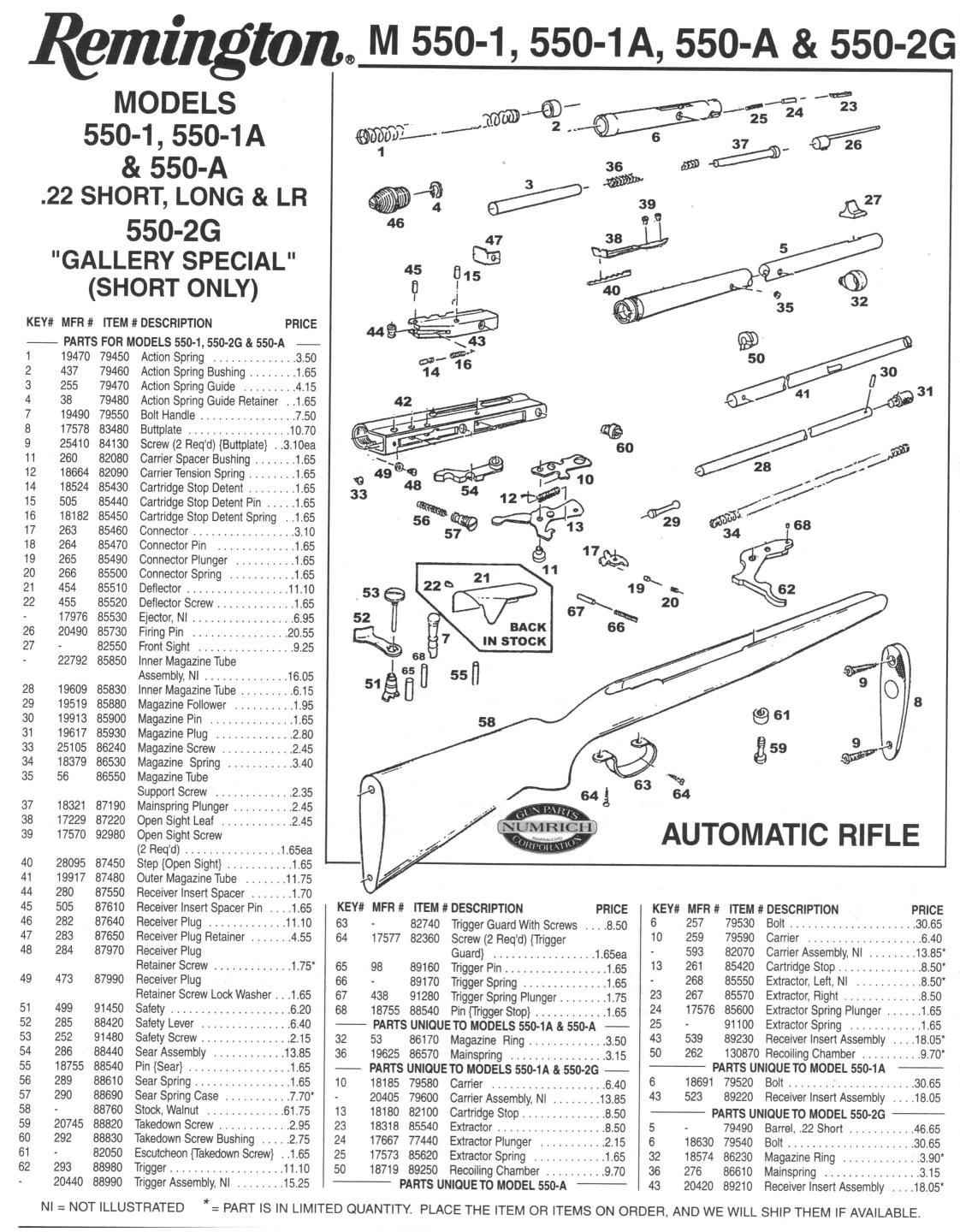 Remington 550-1 Parts Diagram. Remington , , A rifle. Sort by Remington A cartridge stop, A model only # Remington action spring guide retainer # Action Spring - Original. This Remington manufactured action spring is for the model semi-auto rimfire rifle and is in n. Find Remington parts and schematics at Numrich Gun Parts.