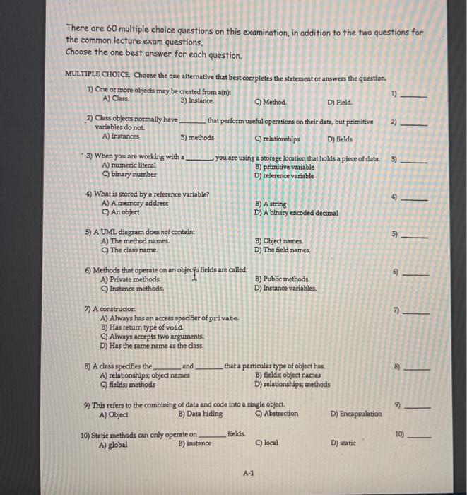 A UML diagram does not contain: the class name the method names object names the data member names Which of the following is true? Classes and structures in C++ ... 18 Mar 2021 — 1 Answer to A UML diagram does not contain: a. the class name. b. the method names. c. the field names. d. object names.1 answer · Top answer: Introduction UML (Unified Modeling Language) is a graphical language for modeling the structure and behavior of object-oriented systems. UML is widely ... Aggregation can occur when a class is a collection or container of other classes, but the contained classes do not have a strong lifecycle dependency on the ... Read this UML guide for everything you need to know about Class Diagram. ... expressions evaluate to values, but values do not evaluate to expressions.