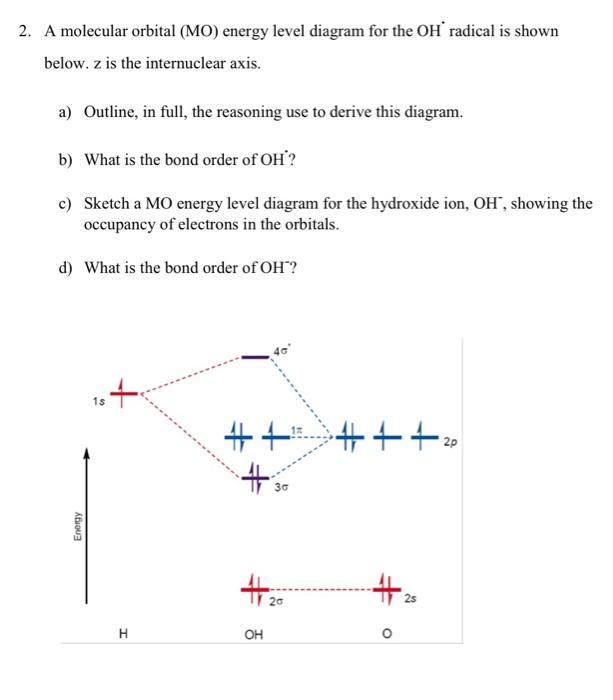 Oh- molecular orbital diagram. A molecular orbital diagram of this species is shown below. Core orbitals are omitted. Marks. 8. Using arrows to indicate electrons with their appropriate spin, ...1 page \[Posted with moderator approval\] I'm creating a sort of sci-fi weird adventure radiodrama, told in the second person. Essentially a piece that starts as a meditation then goes off the rails and becomes a disorienting absurd trip. I have a "story-ified" version that will be turned into script format upon completion. Please let me know how I can improve it, I'm worried it's not engaging enough in its current state. Thanks! Reverse Meditation Episode 1: The Paramour Recorded from a space stati... Feb 05, 2015 · O 2 + 2H 2 O + 4e- ---> 4 OH-In a cell diagram, the anode is always on the left of the double lines and the cathode is on the right. ... *Molecular Orbital Theory ... Molecular orbital diagram of two singlet excited states as well as the triplet ground state of molecular dioxygen. From left to right, the diagrams are for: 1 Δ g singlet oxygen (first excited state), 1 Σ + g singlet oxygen (second excited state), and 3 Σ − g triplet oxygen (ground state). The lowest energy 1s molecular orbitals are ...