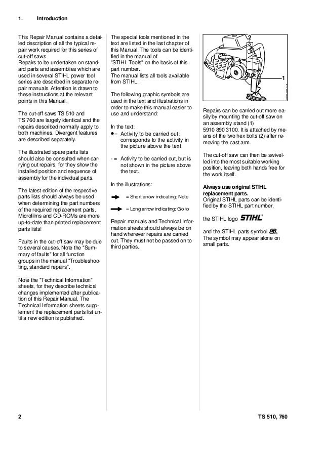 Stihl TS 760 Disc Cutter (TS760) Parts Diagram. Power cutter saw STIHL TS700 and STIHL TS800: The STIHL TS700 cut-off machine is the powerhouse of the .... Stihl TS350 Cut Off Saw - Right side view ... a handy guide to Tillotson carburetors and will be adding the RK-114HL carburetor repair kit to the list of new parts.. Learn how to test and ... View Stihl TS 760 Disc Cutter (TS760) Parts Diagram , N-Cutquik cart to easily locate and buy the spares that fit this machine. Quality Stihl replacement parts, great quality, best prices, FREE SHIPPING! available online Bagikan Artikel ini. 024 028 031 041 ts08 ts50 ts510 and ts760 cut off saws. Carburetor C1Q . We'll get you noticed. Stihl - Service Manual Download Free Stihl Chainsaw parts diagram look up. Stihl ms250 parts list diagram - msstyle.pl Oct 23, 2021 · Stihl ms250 parts list diagram. or Best Offer. Chain Brake.