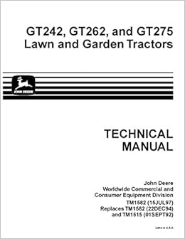 DEERE GT242 GT262 GT275 LAWN GARDEN . JOHN DEERE GT242 GT262 GT275 LAWN GARDEN TRACTOR repair manual & service manual is in pdf format so it will work with computers including WIN, MAC etc.You can Easily view, Navigate, print, Zoom in/out as per your requirements. We accept Paypal and All Credit Cards. If you have any questions regarding this ...