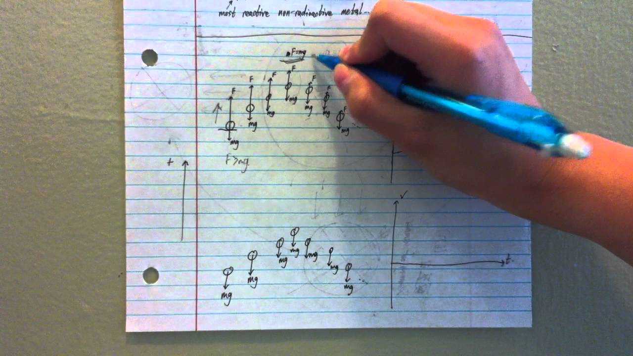 Physics Flashcards - Quizlet Draw a free body diagram showing the forces acting on the chair. Fapplied (185 N) points forward, Fg (155 N) points downward, and Fn (155 N) points upward Draw a free body diagram for the following object: a ball falling in the presence of air resistance.