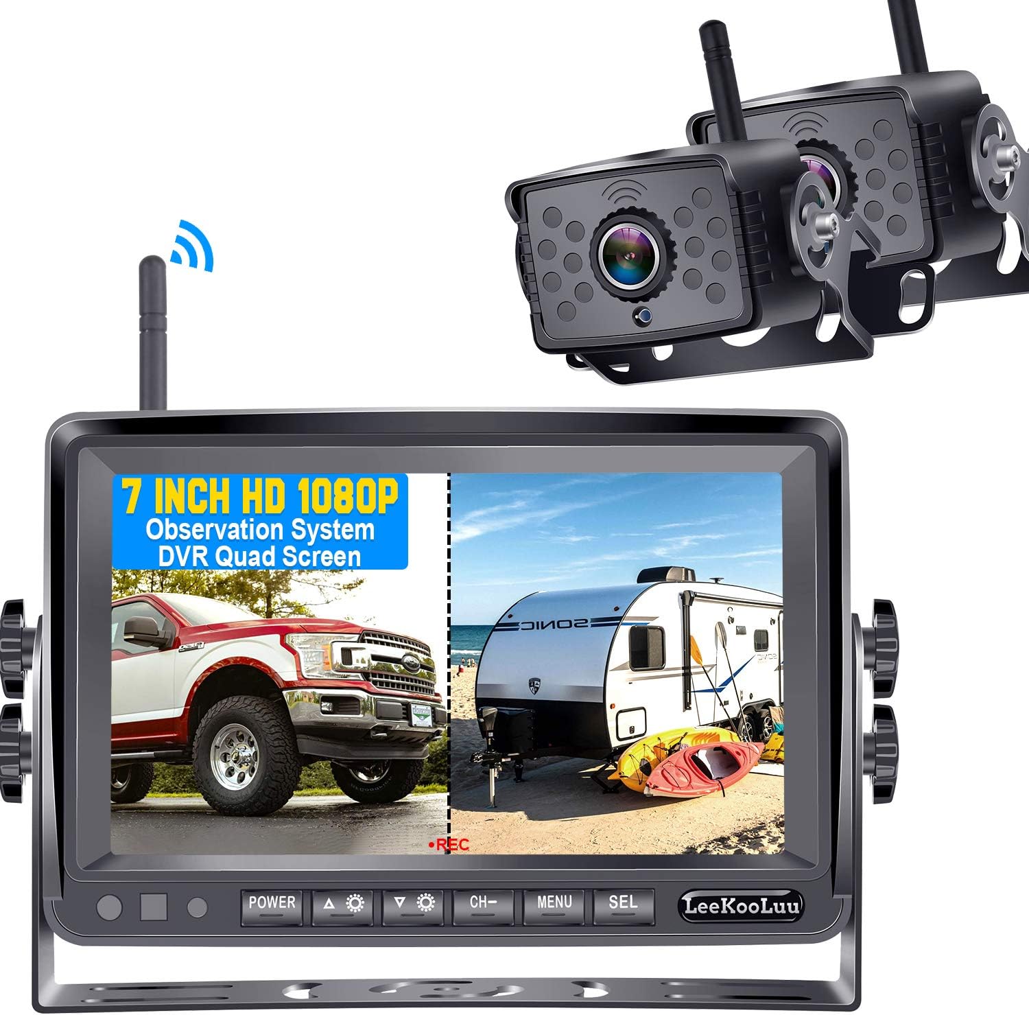 LeeKooLuu | Backup Camera Systems LeeKooLuu Wireless Backup Camera and Mirror Monitor Kit for Car/RV/MPV/Van 9V-24V Rear View Camera System IP68 Waterproof Reverse Camera Night Vision Guide Lines Wireless backup camera easy to install-don't need to pull a long video wire.Wireless signal working at 25ft-30ft, We only recommend you use it on car/suv/mpv/van ect under 20 ft,Don ...