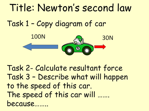 Newton's second law - Newton's laws - Edexcel - GCSE ... Newton's second law Force, mass and acceleration. Newton's second law of motion can be described by this equation: resultant force = mass × acceleration