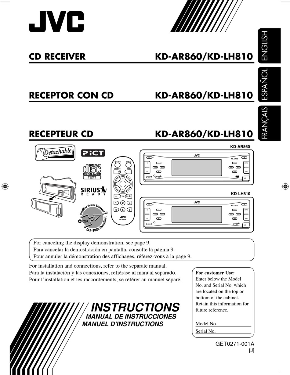 •to clean the monitor, wipe only with a dry silicone cloth or soft cloth. 16 Bit D/A Converter: The JVC KW-R910BT utilizes a 16-bit digital to analog converter for superior sound quality. MOSFET Amplifier: The JVC KW-R910BT is equipped with a MOSFET amplifier. Compared to conventional power supplies, the MOSFET amplification circuit is smaller and more efficient, and it delivers increased power with less distortion ... Jvc Kw-av61bt Installation Manual WordPress.com - KW-R500/KW-R400 For installation and connections, refer to the separate manual. Untuk instalasi dan penyambungan, lihat buku pedoman terpisah. Thank you for purchasing a JVC product. There are no user serviceable parts inside the unit; leave all servicing to qualified service personnel. 3. Jvc KW-R910BT Pdf User Manuals. View online or download Jvc KW-R910BT Instruction Manual. View and Download JVC KW-R910BT instruction manual online. CD Receiver. KW-R910BT car stereo system pdf manual download. Also for: Jvc kw-r910bt. JVC KW-R910BT Manual Online: Installation / Connection. Warning • The unit can only be used with a 12 V DC power supply, negative ground. Introduction In-Dash CD Receiver Built-In Bluetooth and Dual USB Ports Auto Drive Router App control (JVC Original Application) PANDORA Internet Radio Control (For Android and Blackberry with Bluetooth SPP Connection) JVC KW-RBT Manual Online: Wiring Connection, Iso Connectors. When Connecting To An External Amplifier, Connect Its Ground Wire To The Car's Chassis. KW-RBTS / KW-RBTS. CD RECEIVER. INSTRUCTION MANUAL. For customer Use: Enter below the Model No. JVC KW-R910BT test by Cache, JVC. Chevy avalanche I'm got a JVC kW -xs68 CD player an there is no wiring diagram on the radio and the connections cut of the wiring harness for the truck Hello Go to Google and type the information of your Vech and you should get your answer. Our take on the JVC KW-RBTS by Crutchfield's Dave Delamere. JVC's KW-RBTS CD receiver ... Jvc Model Kw-r910bt Wiring Diagram. 04.12.2018 04.12.2018 0 Comments on Jvc Model Kw-r910bt Wiring Diagram. View and Download JVC KW-RBT instruction manual online. Car Stereo System JVC Model KD-S10J Instruction Manual. Jvc cd receiver instructions ( circuit. 16 Pin Auto Stereo Wiring Harness Plug for JVC KW-V140BT / KW-V240BT. 3.4 out of 5 stars 7. $14.85 $ 14. 85. Get it as soon as Fri, Jan 28. $7.85 shipping. Mobilistics Wire Harness fits JVC Car Stereo 16 pin Wire Connector KD-BTP50 KD-HDR52 KD-R330 KD-S28 KD-SR40 KD-X210 J16C. 4.0 out of 5 stars 37. 2003 GMC Yukon XL. Used the wiring harness that came with the stereo. Matched the speaker wires based on the instructions, but still no power.I linked the constant power and ignition wire up underneath the steering wheel as I could not seem to get constant power from anything in the factory stereo wiring harness. The stereo is a JVC KW-R910BT Information for the KW-R920BTS. JVCKENWOOD's product information site creates excitement and peace of mind for the people of the world through JVC brand video camera, projectors, headphones, audio, car audio products and professional business products. I installed a jvc kw-r910bt "double din" in February, first couple months performed perfectly. once it began to get hot, I live in houston, tx, the unit takes 5 to 20 minutes to come on after my truck has cooled down. I called crutchfield and they said there's some temperature monitor and it doesn't operate outside of certain ranges and nothing ... KW-R910BT. Compatibility. Bluetooth Compatibility . iPod and iPhone Compatibility . Audio File Compatibility . Smartphone Linkage. iHeart Link for JVC (1 January 2015) JVC Smart Music Control (1 March 2014) Firmware Updates. CD Receiver/ Digital Media Receiver Updates (23 January 2015) Manual. JVC KW-R910BT Manual Online: Wiring Connection. Front output Rear/subwoofer output For some VW/Audi or Opel (Vauxhall) automobiles You may need to modify ... JVC KW-R920BTS CD receiver covers just about all audio bases, including digital music, streaming Internet radio, siriusxm satellite radio, and old-school music options, like CD and am/FM radio. You can take hands-free calls, as well as switch between two paired phones using its Built-in Bluetooth. Trade Name: JVC Products: MONITOR WITH DVD RECEIVER Model Name: KW-V250BT/KW-V25BT/ KW-V350BT Region 1 Responsible Party: JVCKENWOOD USA CORPORATION 2201 East Dominguez Street, Long Beach, CA 90810, U.S.A. PHONE: 310 639-9000 THIS DEVICE COMPLIES WITH PART 15 OF THE FCC RULES. OPERATION IS SUBJECT TO THE FOLLOWING TWO CONDITIONS: Car Receiver JVC KW-R910BT Instruction Manual. Cd receiver (48 pages) Car Receiver JVC KW-R910BT Instruction Manual. Cd receiver (31 pages) ... Page 34 Wiring connection (For KW-DB92BT) (For KW-R920BT) Antenna input terminal (for FM/AM) Fuse (10 A) Microphone input jack ( 12) DAB antenna jack Antenna terminal ... Demo | Crutchfield Video JVC KW-R910BT Display and Controls Demo | Crutchfield Video JVC KW R930BTS 2D Car Stereo ... Front AUX input CAR -USB/MP3/FM/PAYER WIRING DIAGRAM BACK-MAIN UNIT Part 1 (Hindi) (हिन्दी) कार टेप ... Reciever KW-NT800HDT Review - Also Cover KW-NT500HDT Wiring harness colours explained for a stereo ... KW-R510: KW-R710: KW-R910BT: Be sure to read and follow the instructions in the "CD Receiver Firmware Update Guide." "CD Receiver Firmware Update Guide" download (PDF:31KB) ... JVC KENWOOD Corp. is the sole owner of all copyrights and intellectual property rights of this software and accompanying manuals and other documents.